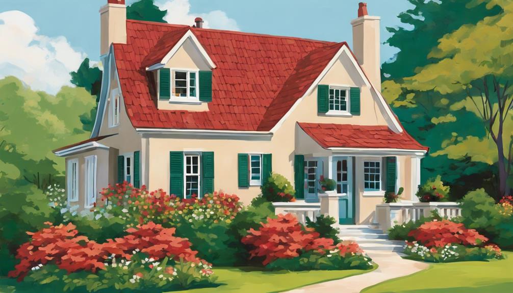 Wyobraź sobie urokliwy dom z czerwoną dachówką, otoczony bujną zielenią. Użycie neutralnych kolorów, takich jak delikatny beż czy jasny szary, może zwiększyć wartość sprzedaży, wykorzystując psychologię koloru, aby przyciągnąć potencjalnych nabywców i poprawić atrakcyjność wizualną budynku.